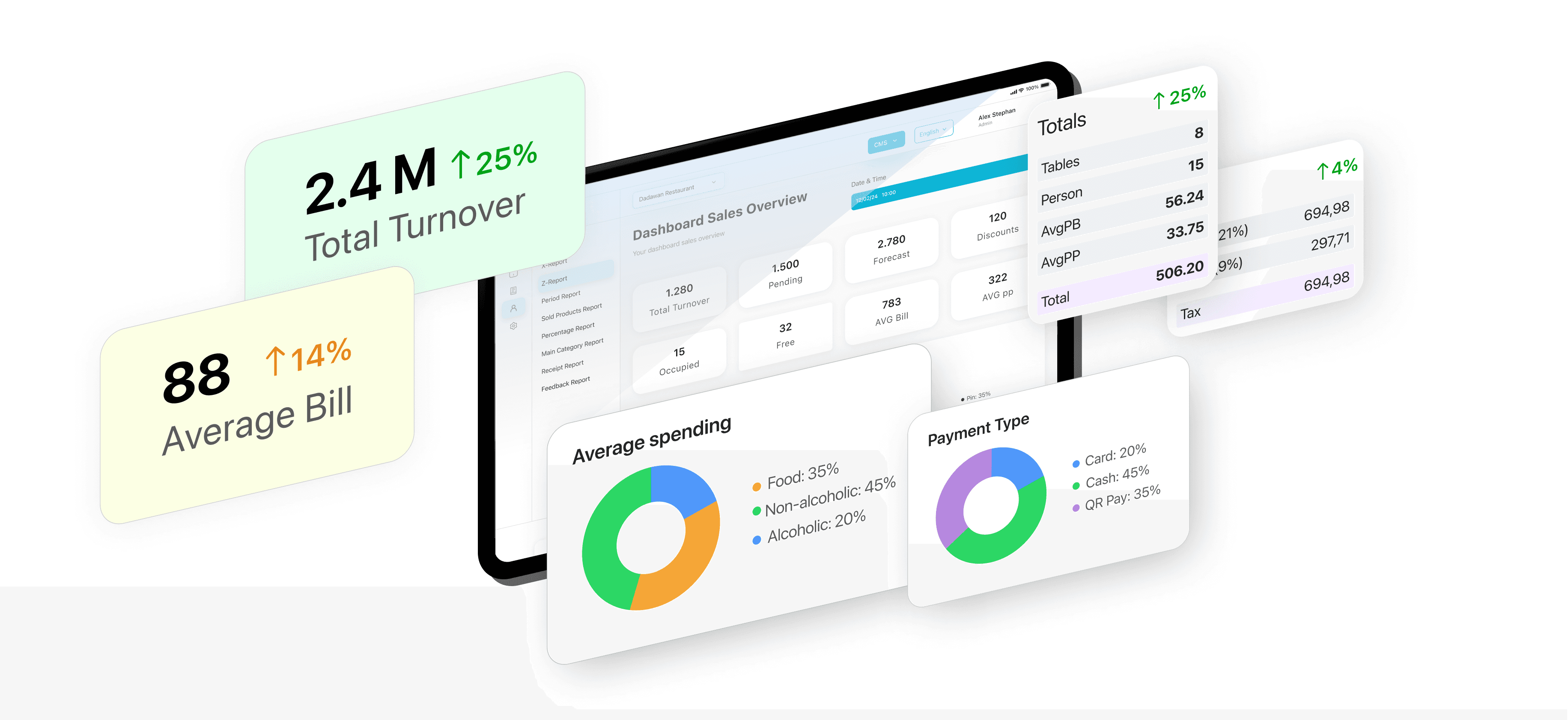 Make payments seamless with direct options for tipping and all standard methods—no hovering waiter needed. Guests can easily settle the bill and show appreciation hassle-free.